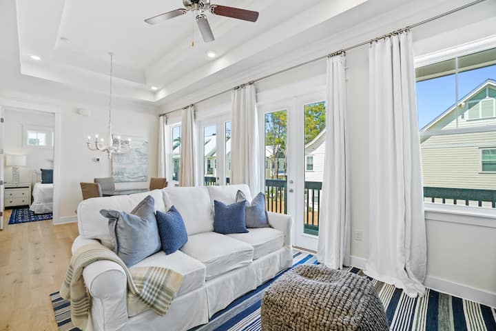 Prominence 30A alquiler apto para mascotas, The White Barn, ubicado en Watersound, Florida, es una casa adosada de 2 dormitorios y 2 baños con todas las comodidades del hogar. SE ADMITEN MASCOTAS, 4 bicicletas incluidas