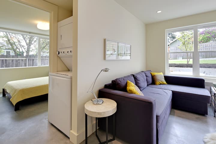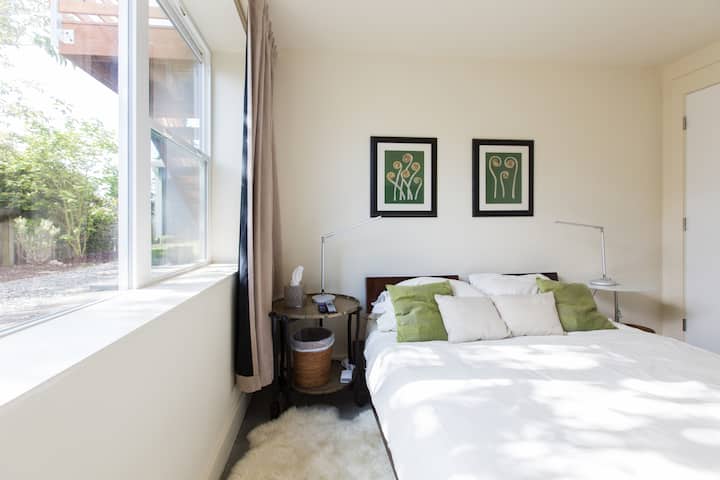 Estamos lejos del bullicio del centro de la ciudad, con fácil acceso a grandes partes de Seattle en autobús, coche, ¡incluso a pie y en bicicleta!