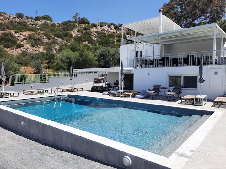 Villa Blanca y Gris Thymari 4 camas dobles, 2 camas individuales