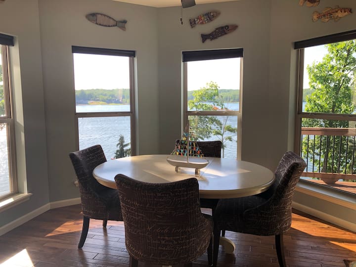 Nuestra espaciosa y nueva casa de 4000 pies cuadrados se encuentra en el lago Alpine, el lago más grande (240 acres) y el más pintoresco en el corazón de Innsbrook. ¡Hay una adición recientemente completada de un cuarto baño y una habitación adicional con literas dobles en el nivel inferior! Ten en cuenta que esto consideraba nuestro quinto "dormitorio" y era adecuado como lugar de reunión para niños. También hay 2 nuevos asientos en la parte superior de kayaks para un total de 4 kayaks, 4 tablas de surf de remo y una nueva canoa para 3 personas.