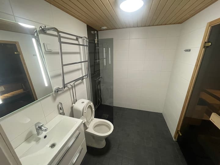 Amplio apartamento de un dormitorio con sauna y cargador para vehículos eléctricos.