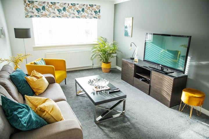 Impresionante apartamento de 2 dormitorios cerca de GLA/aeropuerto/aparcamiento/wifi