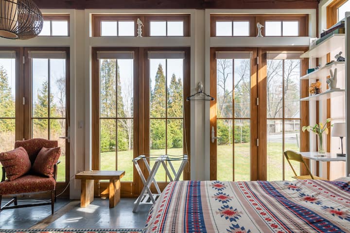 Votado como el segundo mejor Airbnb en las Catskills (TimeOutNY) para una escapada de fin de semana al norte del estado de Nueva York. «Ninguna propiedad ejemplifica mejor el lujo rústico que este enorme granero convertido... parece que ha sido arrancado de las páginas de Arch Digest. El espacio al aire libre es igual de bonito y cuenta con un estanque, un pozo de fuego de piedra, una piscina e incluso un remolque Airstream».
