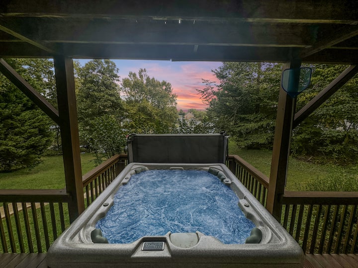 Retiro rústico frente al lago con jacuzzi y apto para mascotas
