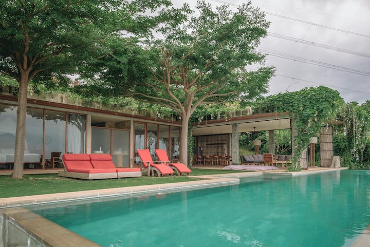 Villa Kurma tiene 3 dormitorios, por lo que es ideal para una gran familia o un grupo de amigos. Disfruta nadando bajo las estrellas en la gran piscina infinita (4 x 18) o acurrúcate con tus seres queridos en el salón abierto, uniendo y divirtiéndote mientras la vista de ensueño a tu alrededor cambia de color.