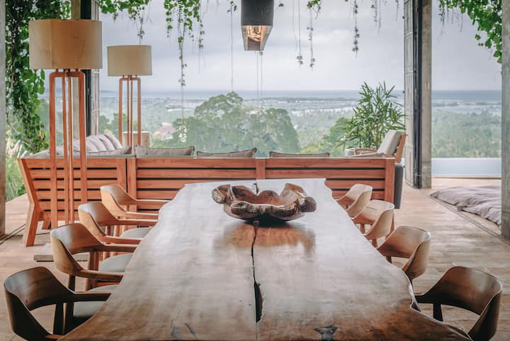 Cocina de fusión con vistas panorámicas a las colinas y a la bahía de Sumberkima.