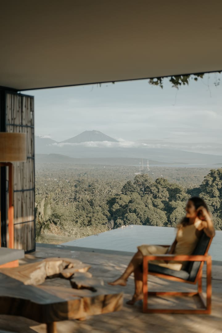 Villa Kurma, es una porción de cielo. Con un cenador en la azotea, es el lugar perfecto para disfrutar de la suave vista del amanecer o de la espectacular puesta de sol detrás de los volcanes de Java. La amplia piscina privada tiene vistas al mar de Bali y al valle cercano para que cada inmersión en el agua sea una experiencia que te acerque a la naturaleza.