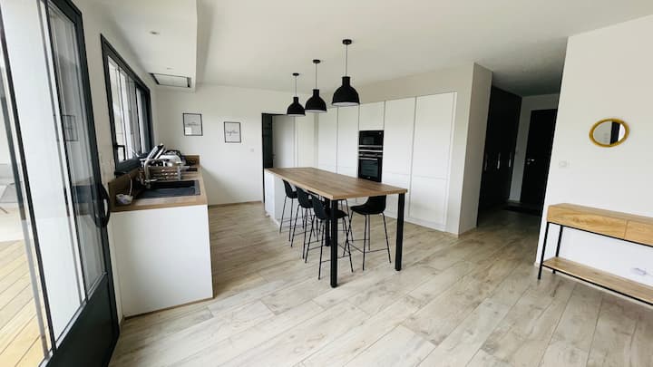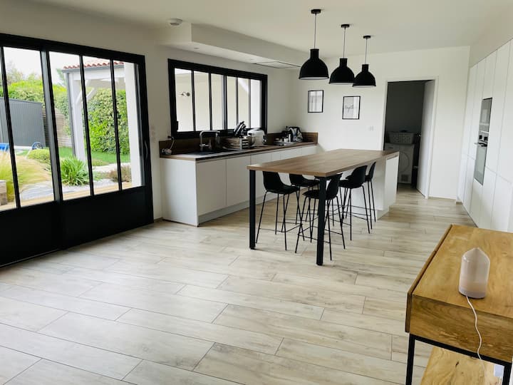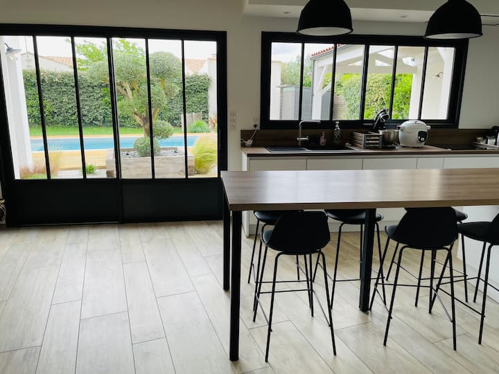 a 10 minutos de la playa, del Pont de l 'ile de Ré o del centro de la ciudad de La Rochelle. A menos de 5 minutos de una gran zona comercial para hacer sus compras e ir de compras. La casa está situada en una zona residencial, que consta principalmente de residencia principal, apreciable por su tranquilidad y poco tráfico. Por lo tanto, respetar el descanso nocturno es primordial. Están prohibidas las fiestas.