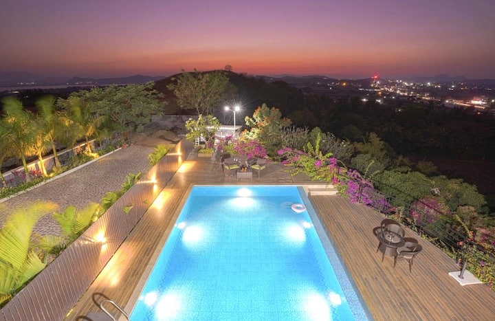 Dam, la vegetación extática y la hermosa puesta de sol. Casa en acantilado Nashik gugal 4 dhirect konnect. Esta villa está a unos 15 minutos en coche de los viñedos de SULA y a 10 km de la ciudad. Esta villa es la escapada perfecta para una familia, acompañada de un enorme césped para que los niños jueguen,