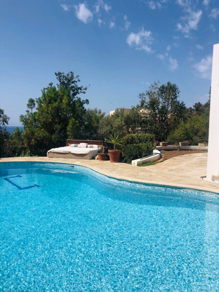 Villa con gran piscina y playa en frente
