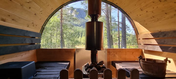 Áreas de tiendas de campaña. Barco de remos. Sauna y jacuzzi en alquiler