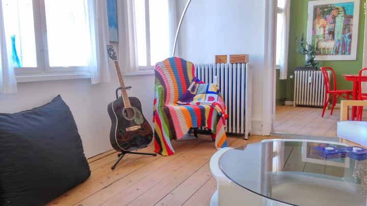 Apartamento grande en una casa antigua muy agradable y original. Mucho espacio y luz. Gran patio tranquilo con una parrilla eléctrica Weber. A solo 500 m de la playa. Naturaleza pura por la puerta trasera y la ciudad cuando salgas por la puerta principal.