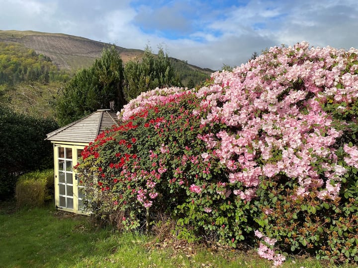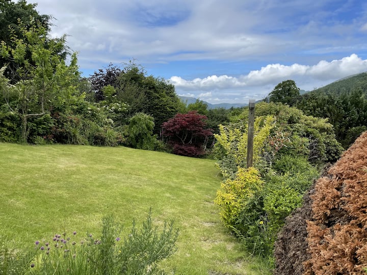 Con vista a la montaña y al jardín