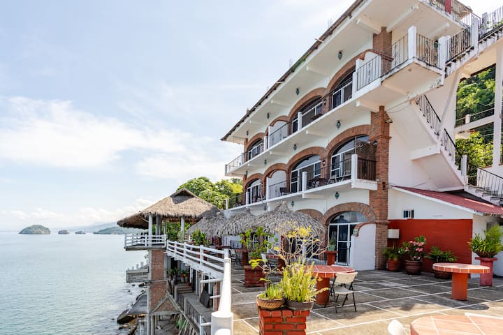 habitacion grande frente al mar con balcón