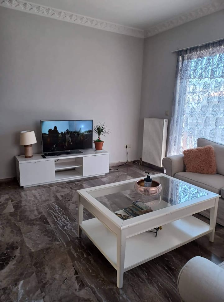 Te aceptamos en nuestro Airbnb una casa de 140 m2 con 3 dormitorios, con una gran sala de estar con chimenea, 2 baños y una hermosa cocina, cada habitación tiene su propio aire acondicionado, así como la sala de estar,tiene wifi gratuito y, por supuesto, la casa es luminosa e ideal para familias. Puedes aclarar que la casa está en el segundo piso sin ascensor . La casa se encuentra a 800 metros de distancia del metro del griego al que se puede ir (Acrópolis, Syntagma, Atenas , aeropuerto) y tienes la posibilidad de ir al mar de Glyfada, que tenía 1,5 km de distancia, en esta zona hay muchas tiendas de restaurantes y hermosas plazas.