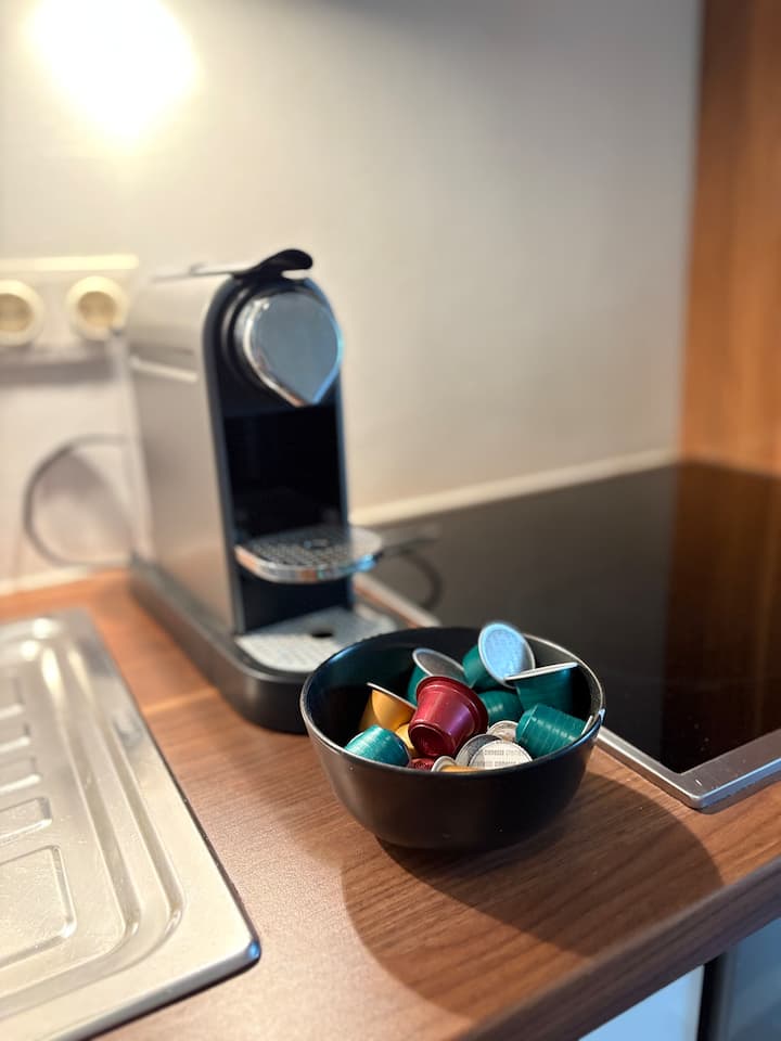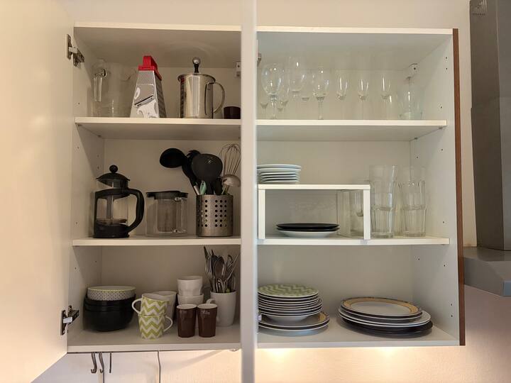 El apartamento está totalmente equipado con todo lo necesario, desde wifi hasta cafetera espresso, lavavajillas, secador de pelo, toallas, ropa de cama, plancha, tabla de planchar, guías de viaje sobre la ciudad y otra información turística.