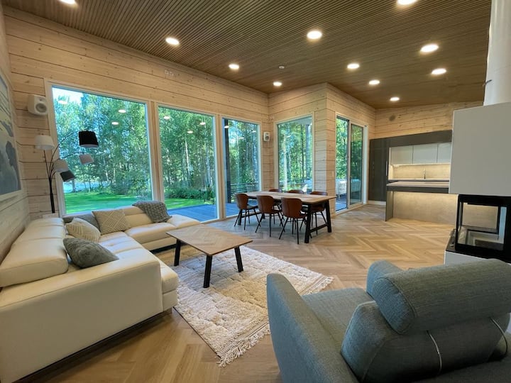 Hermosa villa nueva a orillas de un gran lago