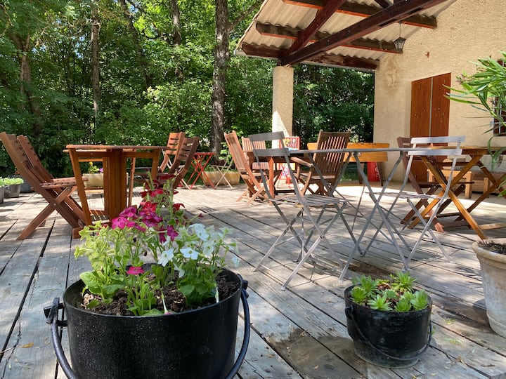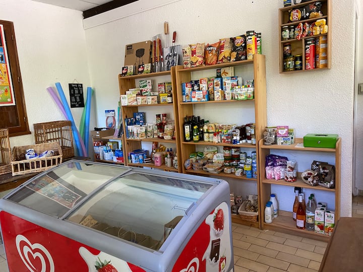 Hermosa ubicación de camping a la sombra con piscina