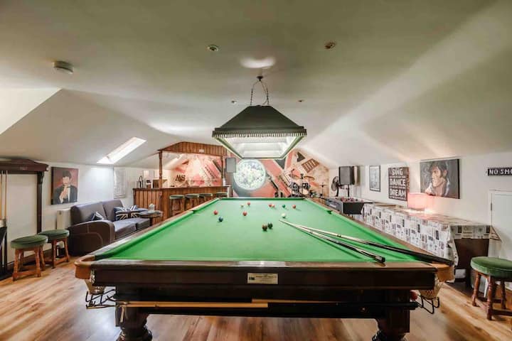 Piscina cubierta y sala de juegos en Mireystock Forest Retreat