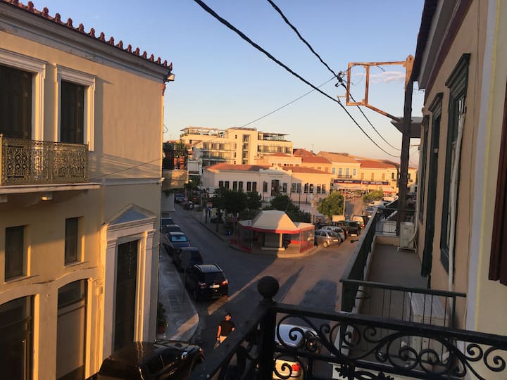 Estoy muy emocionado de ser tu anfitrión de esta encantadora casa neoclásica. Si buscas un lugar céntrico y disfrutas de tu privacidad en una casa espaciosa y de techo alto recién renovado, ¡este lugar es ideal para tu estancia! Ubicado en una ubicación céntrica privilegiada y a pocos pasos de todos los servicios, podrás disfrutar de tu privacidad en una casa de 2 dormitorios con camas 3Queen y un gran comedor adicional y espacio familiar con un balcón con vistas a hermosos sitios de Gytheio.