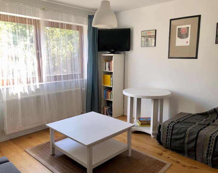 ¡Te damos la bienvenida en medio de Mittelhessens Mitte: Giessen! Alquilamos nuestro anexo, que se abre al este a la parte de frutas y verduras del jardín, por lo que está encantado con el sol de la mañana. Dado que vivimos en el resto de la casa con nuestra familia, estaremos encantados de responder a cualquier duda que puedas tener.