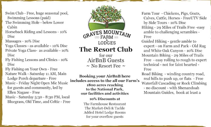 Somos una familia de seis personas. Rachel y Jimmy son nuestros, Lynn 's y Lucky' s, mamá y papá. Te reunirás con ellos si vienes a la cabaña principal y al restaurante, un restaurante de estilo familiar del sur, tres comidas al día para nuestros huéspedes en la cabaña principal o en las cabañas. Encuentra a Jimmy y encontrarás muchos cuentos de montañas.