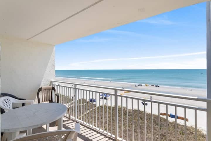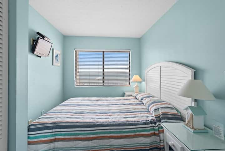 Este acogedor condominio cuenta con dos dormitorios y dos baños, lo que lo convierte en una excelente opción para parejas, familias pequeñas o grupos de amigos que buscan disfrutar de una escapada a la playa. En el interior, la unidad está equipada con muchas comodidades para el hogar, como wifi, tres televisores de pantalla plana para el entretenimiento y lavadora y secadora en la unidad. El dormitorio principal cuenta con una vista a la ventana frente al mar, que te permite despertarte con las relajantes vistas y sonidos del Atlántico. La bañera de hidromasaje del baño principal ofrece un toque de lujo. Y puedes preparar comidas en la cocina completa, completa con una cafetera de goteo, lo que permite las mañanas tranquilas con una taza de café fresco mientras observas el amanecer sobre el océano.