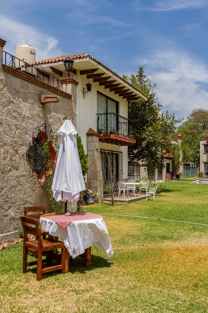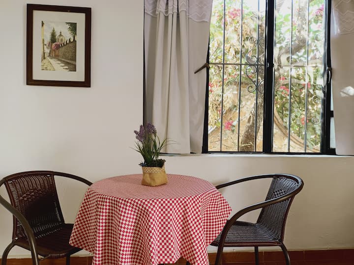 Suite romántica en jardín colonial, centro a pie
