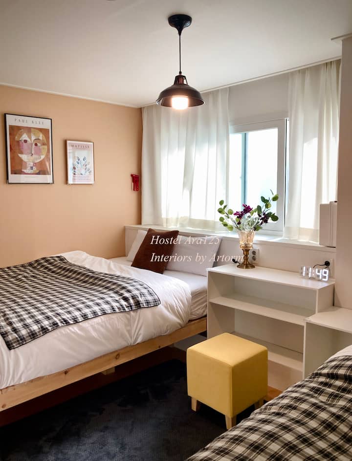 [Hostel Ara 125] La mejor ubicación de Myeongdong, una guesthouse para huéspedes sensibles [02_Habitación doble familiar]