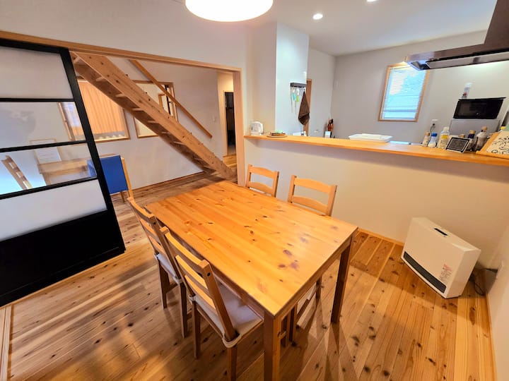 A 45 minutos de Hakuba y a 30 minutos de las estaciones de esquí cercanas. Ubicación conveniente para lugares de interés como el Castillo de Matsumoto. Villa de alquiler recién construida con aguas termales naturales
