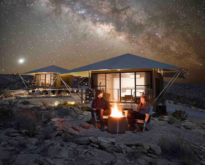 ¡Te damos la bienvenida a Camp Elena! Estamos ubicados a menos de 10 millas del Parque Nacional Big Bend y a pocos minutos de Terlingua Ghost Town. Nuestras tiendas de campaña de lujo ofrecen una experiencia de glamping de vuelta a la naturaleza con vistas impresionantes de los Chisos y las cordilleras de Navidad y la Reserva del Cielo Oscuro más grande del mundo. Relájate y desconecta durante una escapada en pareja o un retiro en grupo mientras disfrutas de servicios modernos y sostenibles en el Salvaje Oeste de Texas.