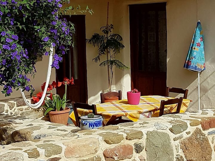 Casa de piedra en un pequeño pueblo
