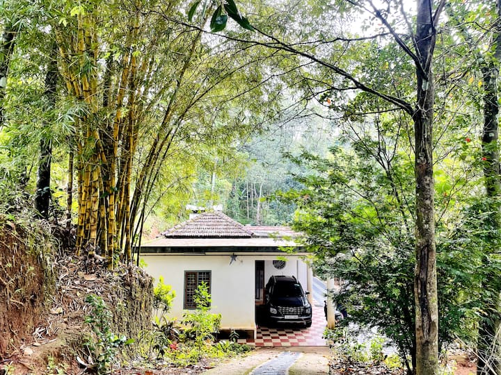 ¡Retiro aislado en un pueblo en un jardín de especias de 1,5 acres! La habitación privada con baños en suite ofrece paz y privacidad. Perfecto para trabajar desde casa, solteros y familias. Nuestra familia vive en el lugar y está disponible para ayudarte respetando tu privacidad. Impresionante cascada a 2,5 km de distancia. Munnar y Thekkady a menos de 50 km. Noches relajantes con reuniones suaves. Los amantes de la fiesta del núcleo duro, por favor, disculpa.
