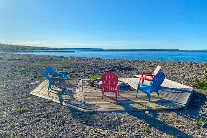 Lo mejor de tener una casa de campo con exposición al norte es que puedes disfrutar de los amaneceres y las puestas de sol desde la playa, ¡y las puestas de sol son espectaculares en la bahía georgiana! Debido a la naturaleza pedregosa de la playa, común a la costa de la península de Bruce de la bahía Georgian (¡después de todo, esta es la capital de los saltos de piedra de Canadá!), necesitarás zapatos para el agua y una selección de ellos se proporciona cuidadosamente para aquellos de ustedes que aún no los tengan. Se proporcionan dos kayaks. Prepárate para una fogata nocturna para s'mores y malvaviscos, alrededor de la fogata, ¡y tendrás la manera perfecta de terminar el día!