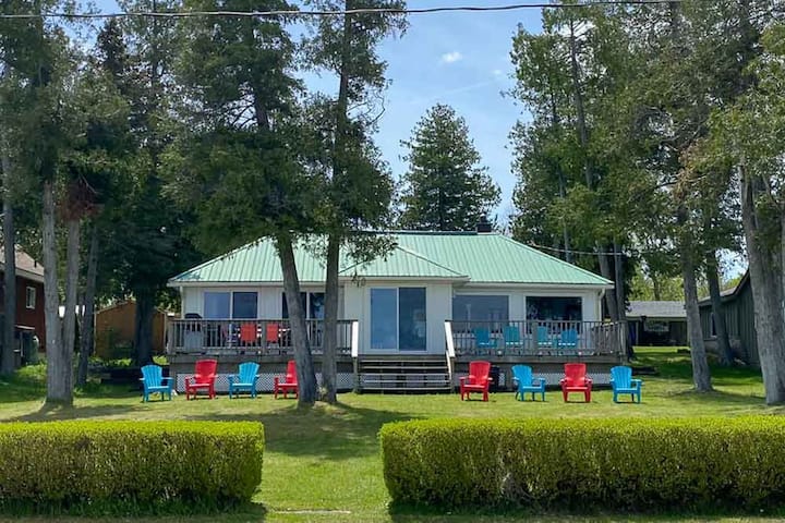 Al llegar a esta cabaña de alquiler en la península de Bruce, te espera un regalo, ya que cuenta con una decoración de paredes encaladas con un tema náutico, lo que le da una verdadera sensación de casa de lago. El salón principal ha sido renovado recientemente y ofrece una amplia zona para todo el grupo, con electrodomésticos y comodidades modernos. La casa tiene dos alas distintas, perfectas para grupos que deseen algo de privacidad, con cada ala compuesta por 3 dormitorios y un baño de 4 piezas, mientras que todavía permite un montón de espacio para reunirse en la sala de estar.