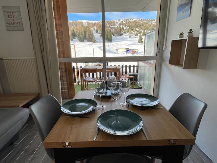 Momento mágico al pie de las pistas en Superdevoluy