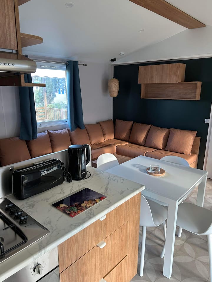 Será un placer darle la bienvenida a mi nueva casa móvil, idealmente situada en el camping de 4* Siblu Mar Estang.