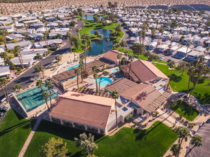 Sky Valley Resort es un oasis en el desierto con piscinas minerales naturales para los vacacionistas que buscan una escapada tranquila. Con más de 13 piscinas, canchas de pepinillos y hermosos paisajes del desierto, ¡podrás experimentar el desierto en todo su esplendor! ¡A solo 30 minutos de Palm Springs y a una hora de Joshua Tree!