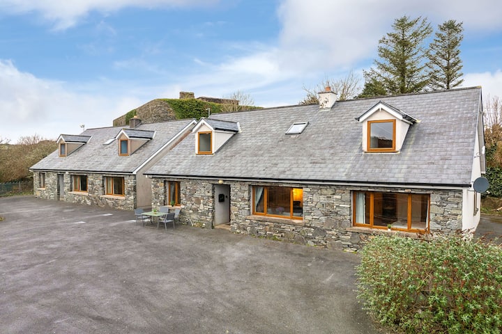 5 dormitorios, 5 baños, capacidad para 9 personas. Una propiedad moderna lujosamente terminada ubicada en la ciudad de Clifden, en un sitio elevado con vistas al río Owenglen y a la cascada. Perfecto para familias y amigos. Esta propiedad independiente está situada a solo 100 metros de la calle del mercado de Clifden. Clifden es una bulliciosa ciudad comercial en la hermosa Connemara que ofrece muchos bares, restaurantes, tiendas y servicios. Situado en el Wild Atlantic Way, estás a poca distancia en coche de una selección de hermosas playas de arena donde puedes nadar, caminar o disfrutar del kayak, el surf, el coasteering o el surf de remo. Hay muchas playas repartidas a lo largo de la costa y algunas de las playas más populares se pueden encontrar en Cleggan, Claddaghduff, Renvyle, Ballyconneely y Roundstone. Hay muchas rutas a pie en la zona que ofrecen fabulosas vistas panorámicas a cada paso, incluida la autopista Connemara Greenway, a la que se puede acceder justo al otro lado de la calle desde la propiedad, el paseo Derrigimlagh Loop y los diversos senderos para caminar por todo el Parque Nacional Connemara. Las actividades locales incluyen pesca, caminata por la colina, senderismo, ciclismo, senderismo en poni, golf, excursiones en barco y mucho más. Los festivales de interés en la ciudad de Clifden son Clifden Arts Festival, el Connemara Pony Festival, el Festival de Música Tradicional de Clifden y muchos más a lo largo del año.