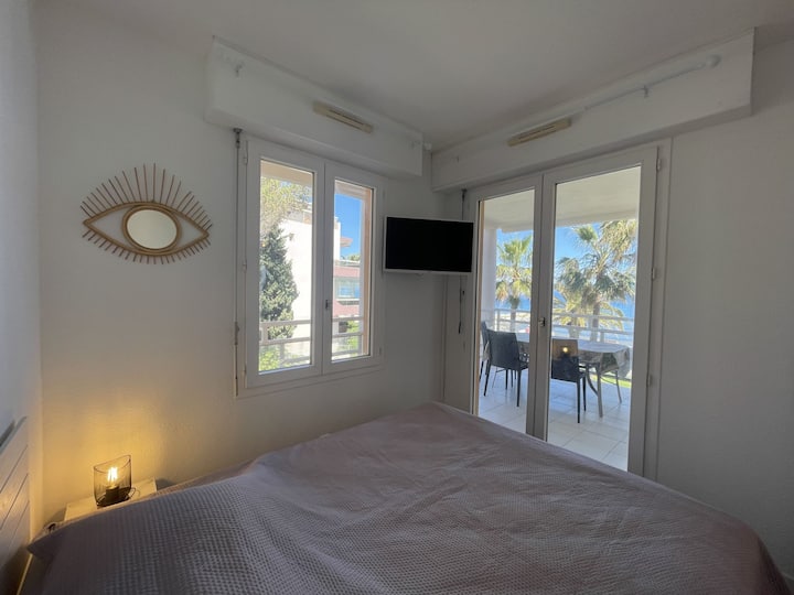 Departamento de 2 habitaciones de 40 m2 en el primer piso. Totalmente renovado en 2025, muebles cómodos y hermosos: sala de estar/comedor con 1 sofá cama doble (1 x 140 cm, longitud 190 cm), TV (pantalla plana). Salida a la terraza. 1 habitación con 1 cama francesa (1 x 160 cm, longitud 190 cm). Sal a la terraza.