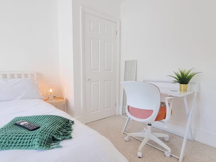 Apartamento luminoso y elegante de dos dormitorios, con; aparcamiento gratuito/ 2 x Smart TV / cafetera / escritorio y silla de oficina. A 1 minuto a pie de los supermercados, gasolinera, cafetería, cajero automático y parada de autobús de Marston, donde podrás coger un autobús directo al centro histórico de la ciudad de Oxford, famosos terrenos universitarios y estación de tren.