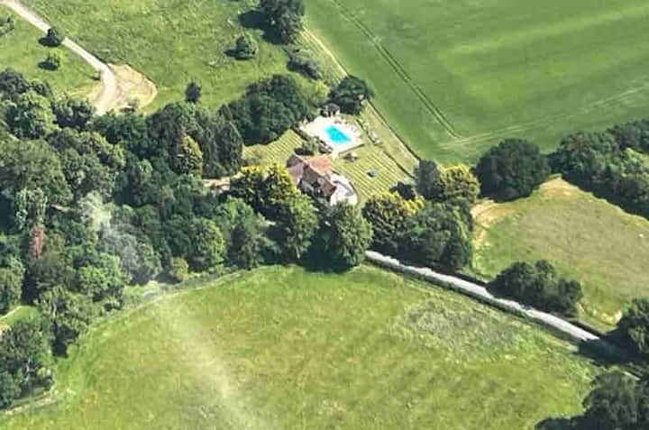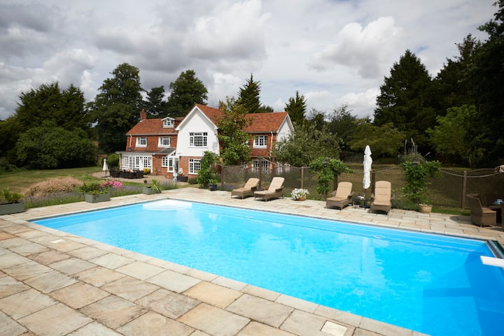 En el jardín hay una gran piscina de 40 'x20’ con una cubierta de seguridad eléctrica (abierta desde finales de mayo/junio hasta finales de septiembre). Una gran terraza rodea la piscina y tiene impresionantes vistas al valle de Stour. Durante el verano hay tumbonas disponibles y una casa de piscina con un área de cocina, nevera, lavabo e inodoro. El armario de la casa de la piscina contiene muchas toallas para usar en la piscina durante tu estancia.