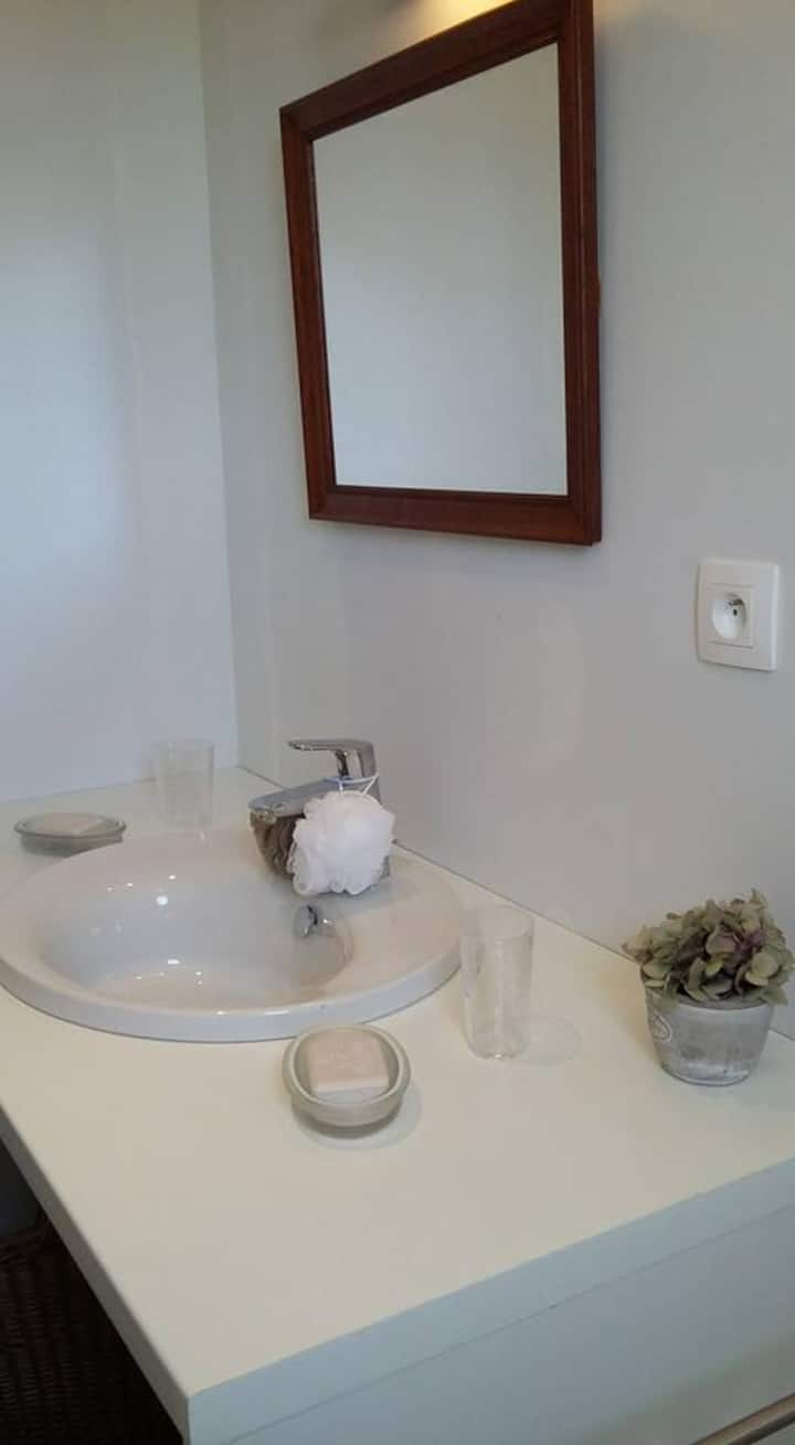 habitación con encanto totalmente independiente nueva de 26 m² con cuarto de baño ducha a ras de suelo y aseo (aparcamiento fácil delante de la puerta)Situada a 100 m del mar al borde del pueblo al pie de los carriles bici