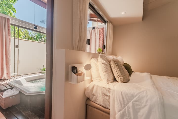 Relájate con una ducha exterior y un jacuzzi.