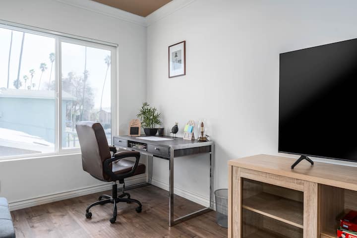 Disfruta de esta acogedora y limpia unidad de arriba, totalmente amueblada y equipada con dos dormitorios y un baño en el centro de la ciudad de Inglewood. A poca distancia a pie del estadio SoFi, Kia Forum y a poca distancia del aeropuerto y las playas locales.