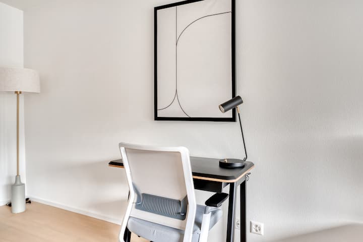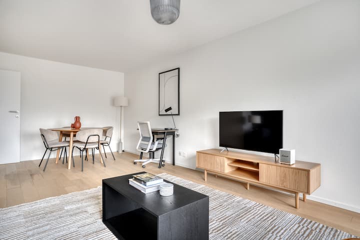 Nuestros alojamientos de diseño profesional incluyen cocinas totalmente equipadas, wifi rápido, ropa de cama de primera calidad y entretenimiento inteligente, con acceso a gimnasios, piscinas o espacios al aire libre en edificios seleccionados.