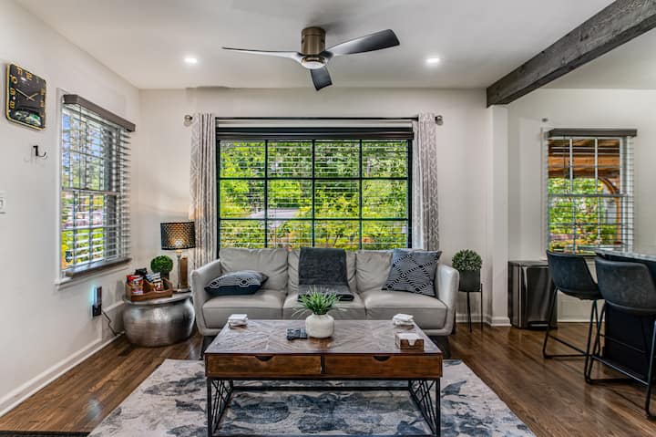 Ubicada en un vecindario tranquilo con fácil acceso a lo mejor de Atlanta, esta tranquila casa de concepto abierto tiene un encanto innegable. Amplias salas de estar, diseño moderno y un espacio de trabajo totalmente equipado. Lo más destacado es el área de entretenimiento al aire libre, que cuenta con una sala de estar cubierta al aire libre, TV al aire libre de 50pulgadas y parrilla.