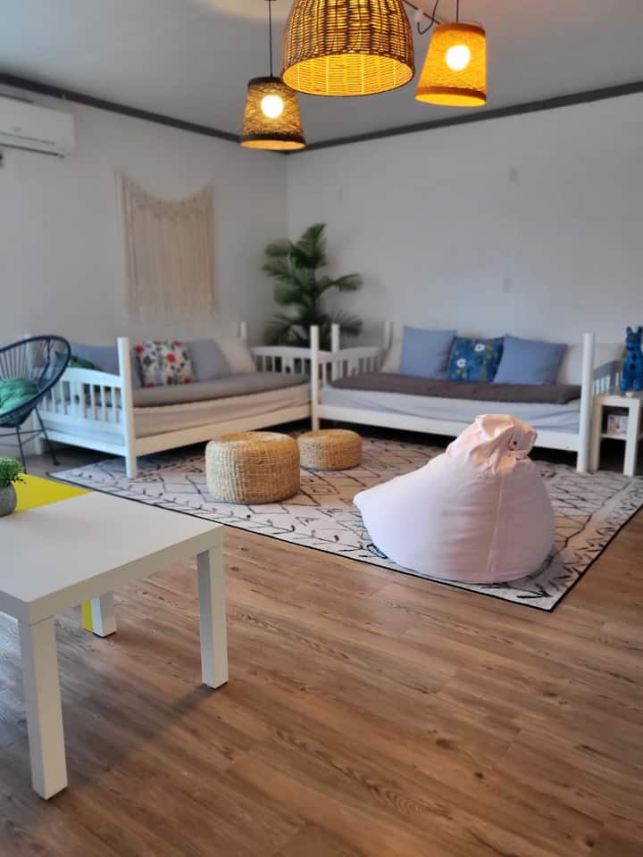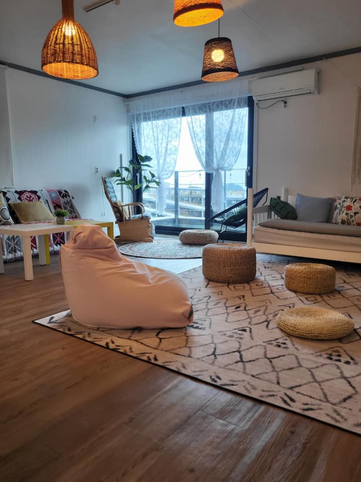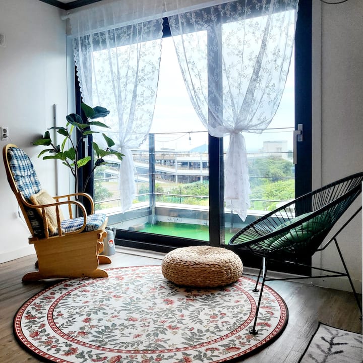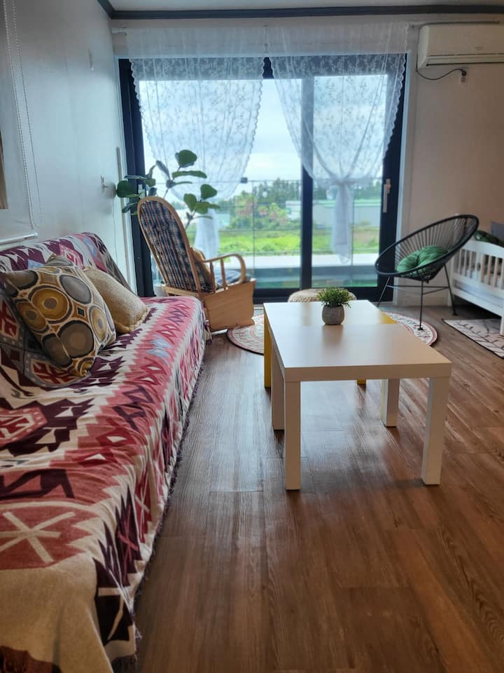 Puedes disfrutar de una barbacoa por la tarde mientras escuchas música en un jardín tranquilo y espacioso. Dado que se encuentra en el centro de Seogwipo, el famoso Olle Trail, Cheonjiyeon, Jeongbang Falls y Oedolgae están a 5 minutos.