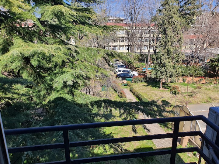 En el centro de Skopje, en una zona verde.