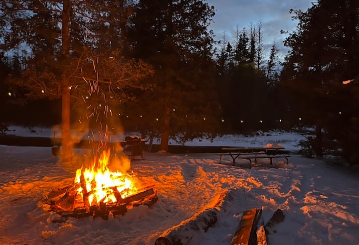 Retiro en yurta junto a la chimenea con kayaks